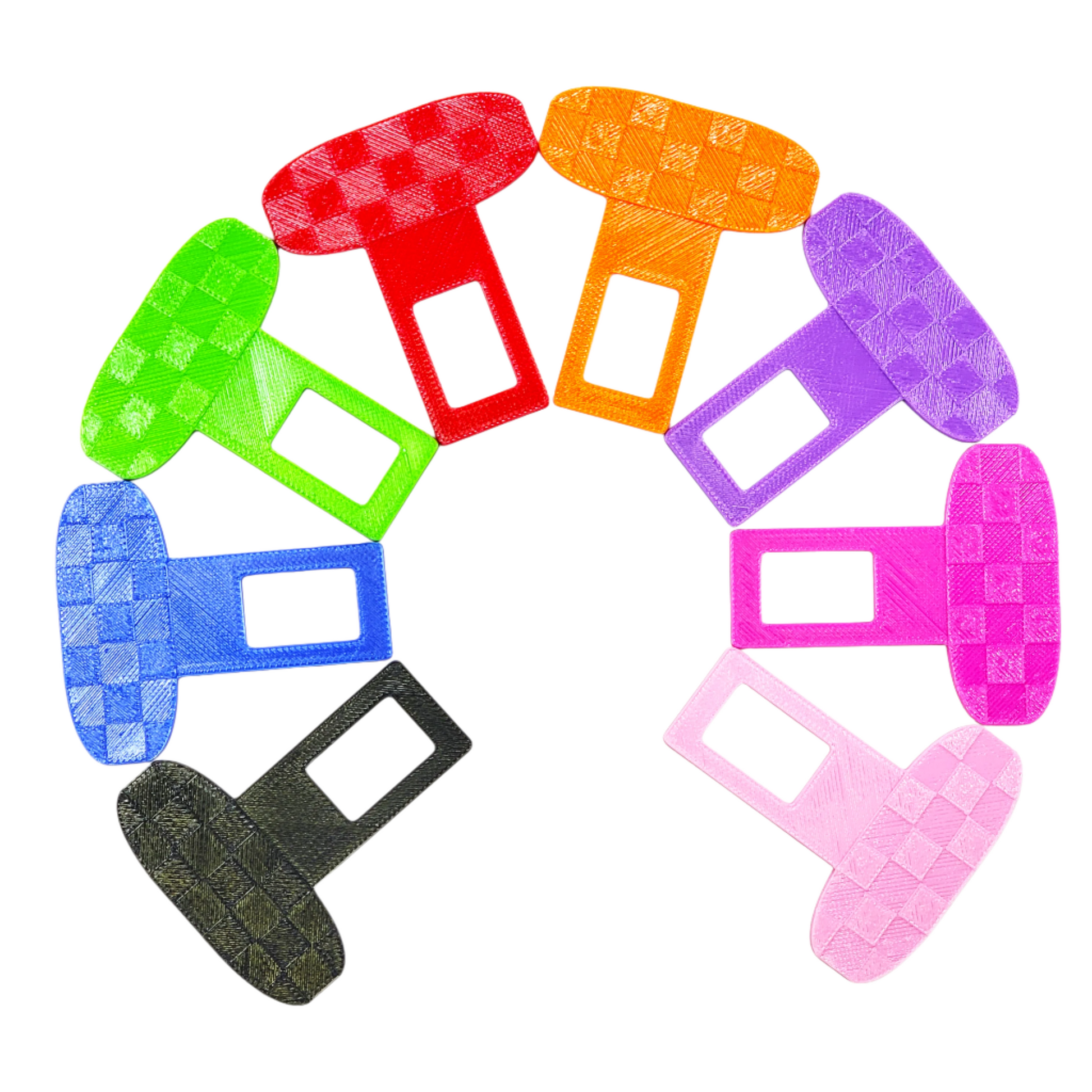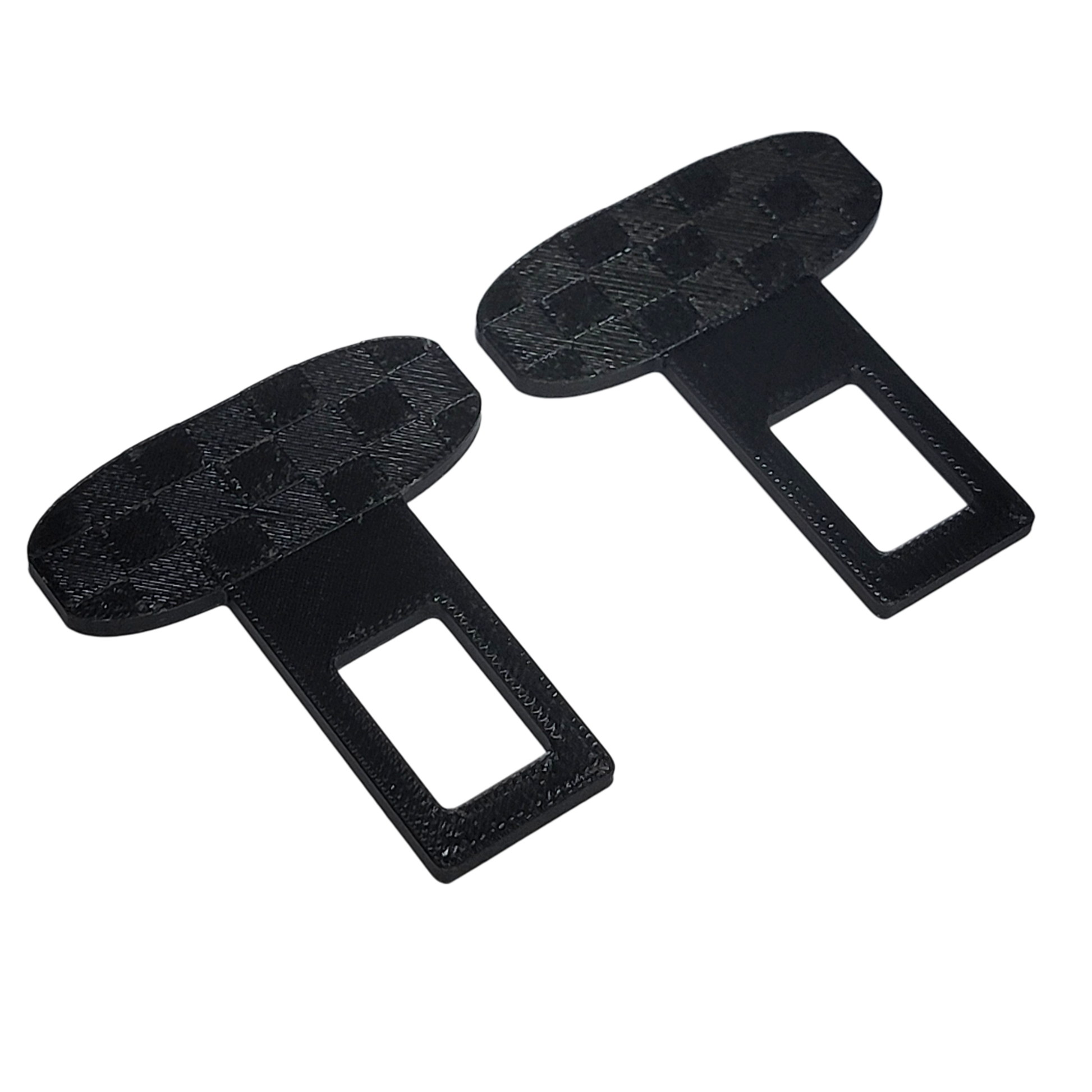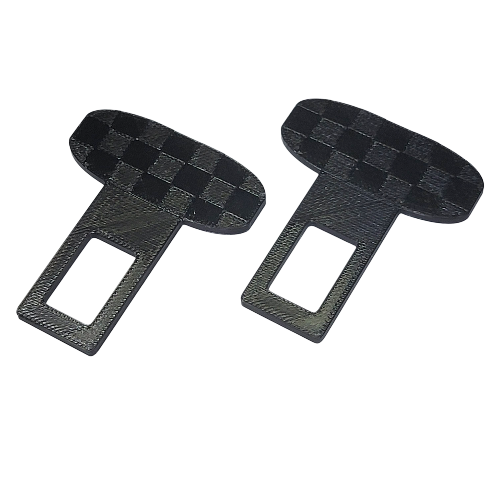 Multiple colors available! 2 pack of checkered pattern universal fit seatbelt silencers. These plug into your seatbelt receiver and silence the seatbelt alarm. Simple and easy way to stop your seatbelt alarm from beeping at you! Safe and effective. We also offer a standard non-checkered pattern seatbelt silencer here. Made from heat/ UV resistant industrial polymer.